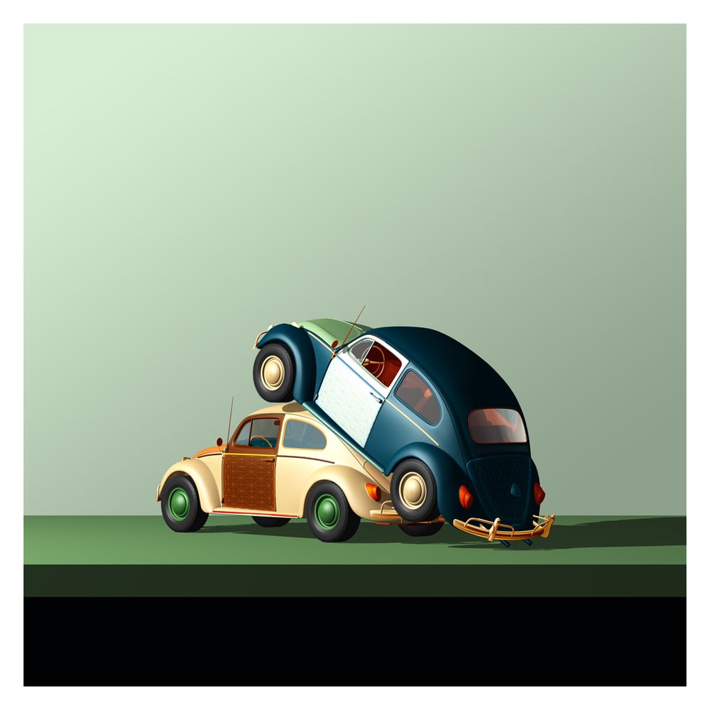 Volkswagen Beetle art. Quite a 'sexy' piece of art this one, so perhaps suitable for the bedroom. :) A take on the mating habits of the insect version of this iconic vehicle.
